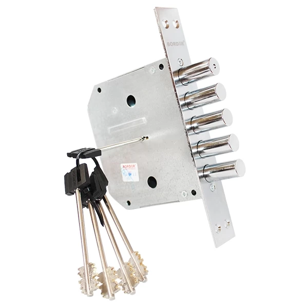 Замок врезной сувальдный K8-6 сертифицирован согласно 4ому классу безопасности. Предназначен для установки в металлические двери. Все детали выполнены из высокопрочной стали, что позволяет использовать замок в противопожарных дверях. Обладает высокой секретностью - более 250 000 вариаций. Имеет засов из пяти мощных цилиндрических штырей. В одном из штырей запрессован закаленный стержень - защита от перепиливания. Ослабленные зубья на пластине засова служат защитой от взлома «свертышем».