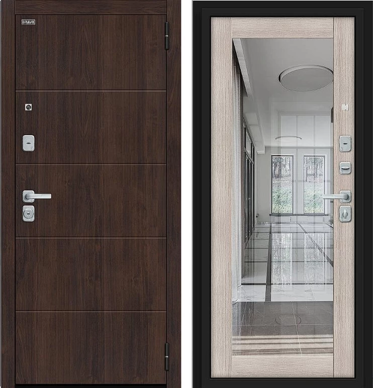 Надежная входная Дверь Браво Флэт/BChrome Almon/Cappuccino Melinga премиум класса по цене 42 447 руб. Большая толщина стали защитит от проникновения в ваш дом, квартиру или коттедж. Используется очень качественная фурнитура: замки, цилиндры, ручки, защелки. Покрытие и отделка двери изготовлено под внимательным контролем производителя. Дверь имеет долгий срок службы и гарантию.
