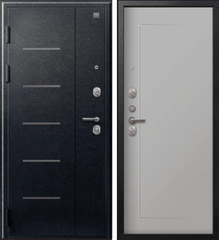 Надежная входная Дверь V-03 Черный муар - Кашемир сильвер премиум класса по цене 39 307 руб. Большая толщина стали защитит от проникновения в ваш дом, квартиру или коттедж. Используется очень качественная фурнитура: замки, цилиндры, ручки, защелки. Покрытие и отделка двери изготовлено под внимательным контролем производителя. Дверь имеет долгий срок службы и гарантию.